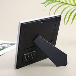 Elevate your photo display with our premium quality frame made of scratch-resistant, lightweight plastic that is easy to clean. The clear glass display ensures your photos are protected and viewed in crisp detail. This 2-in-1 frame features a 3.5*5" photo slot alongside an LCD screen displaying the time, date, day of the week, and room temperature. With a built-in alarm clock that gently wakes you up or reminds you of important tasks, this frame is as functional as it is stylish. The sturdy desktop stand is adjustable, allowing you to place it on desks, nightstands, or shelves at the perfect angle. Powered by 2 AAA batteries (not included), this frame can be placed anywhere in your home or office without the need for cords. Its slim and space-saving design, measuring 190×184×21mm, fits easily in small spaces while maintaining style and functionality.